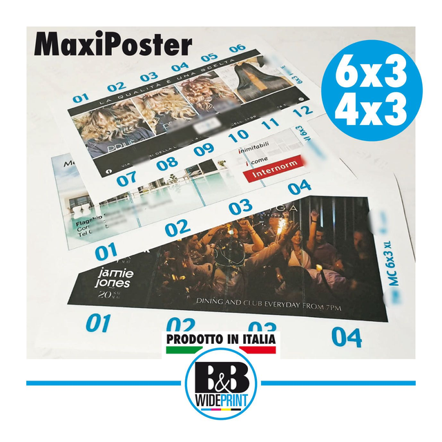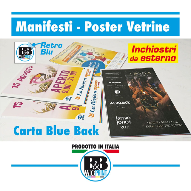 Colori brillanti su carta retro blu per Maxiposter da affissioni, Poster vetrine e Manifesti. Per misure personalizzate e invio file di stampa contattare +393299446684