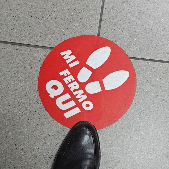 Adesivo Calpestabile Antiscivolo per pavimento. Stampa a colori e taglio tondo, Lavabile e Sanificabile. Disponibile in 3 misure. Per altri soggetti, misure personalizzate o grosse quantità contattare +393299446684